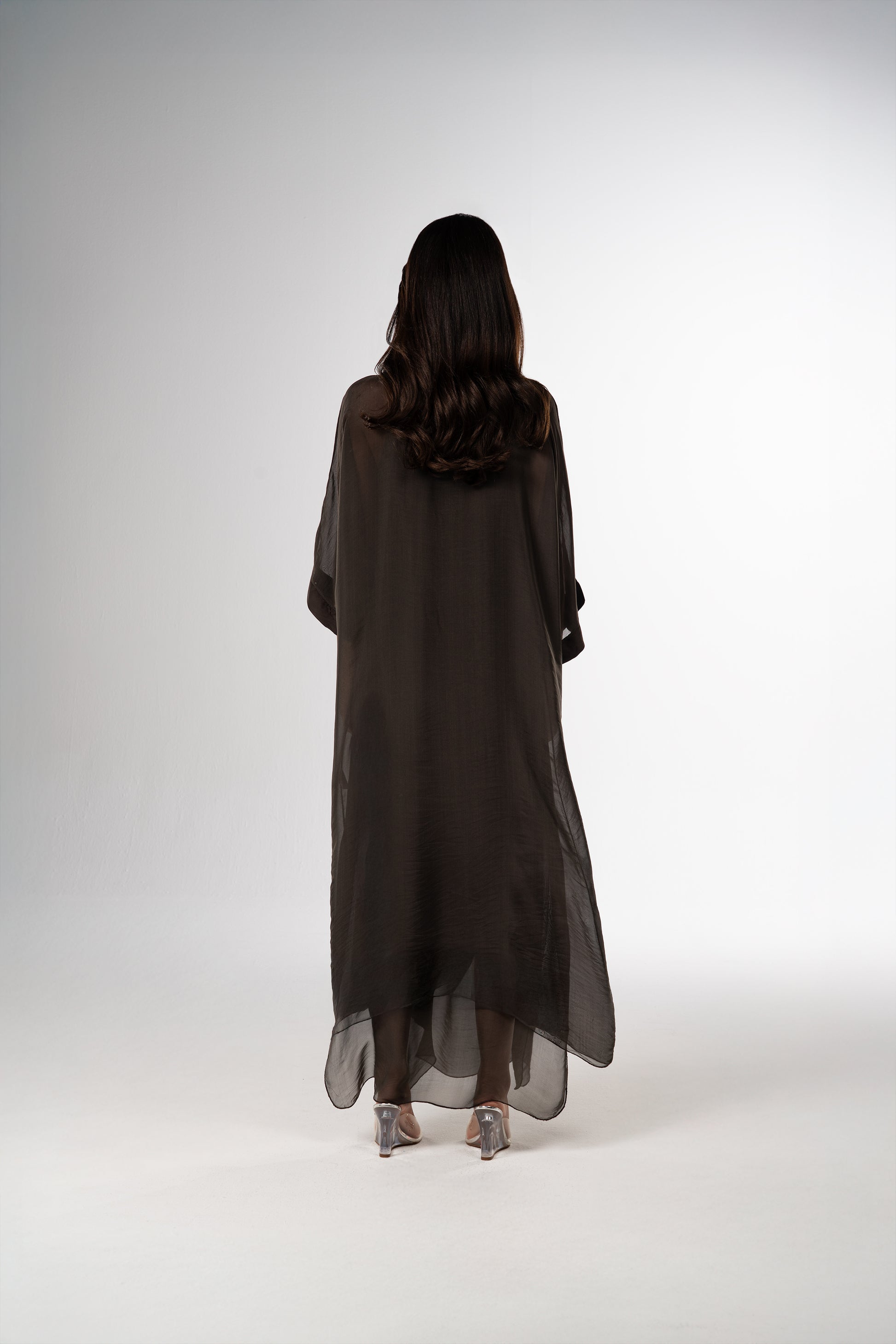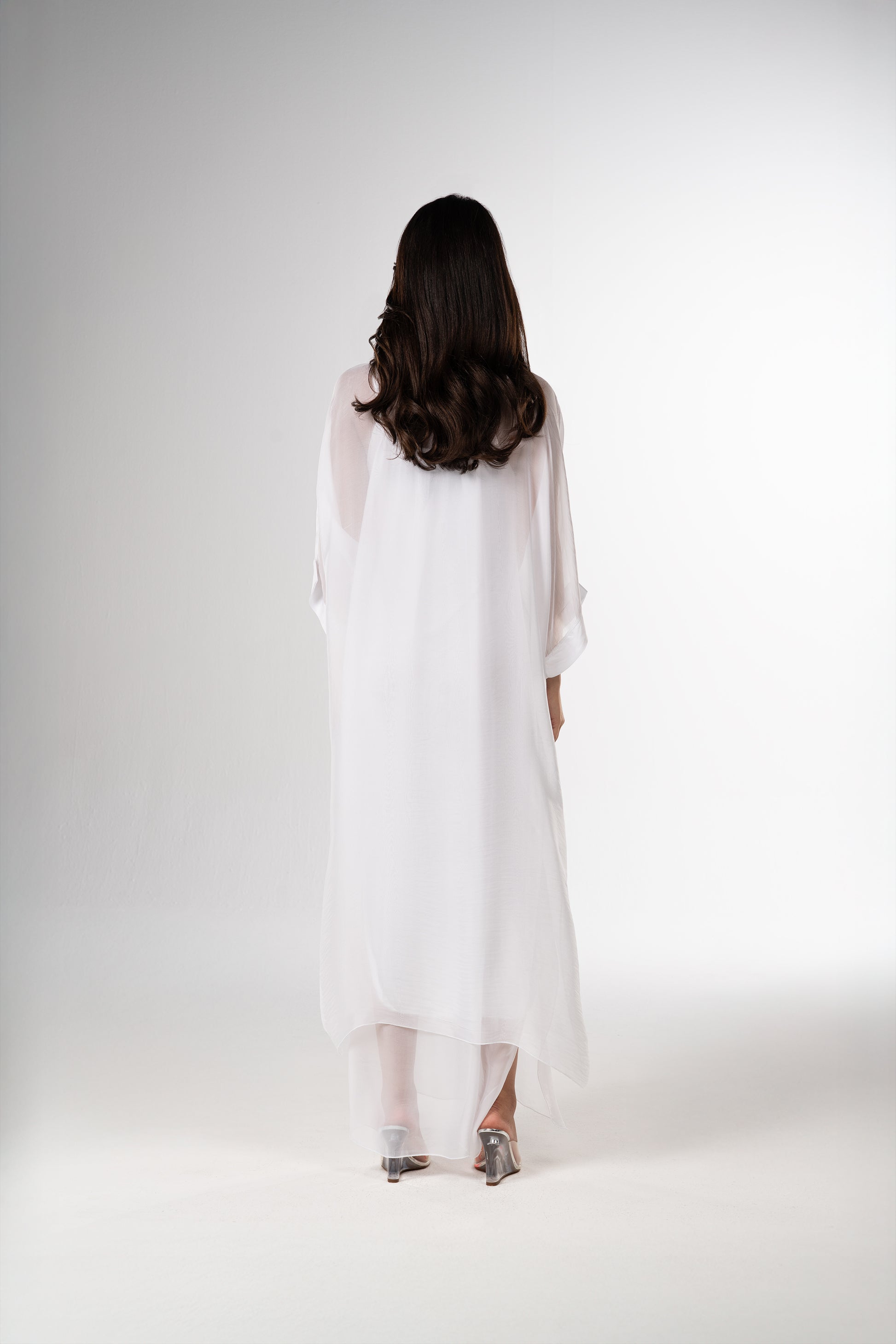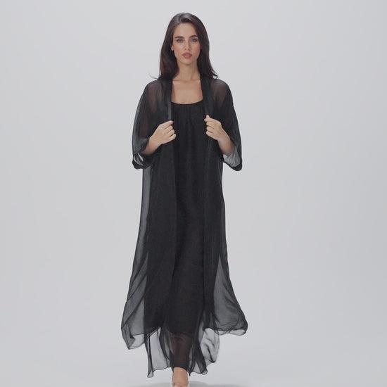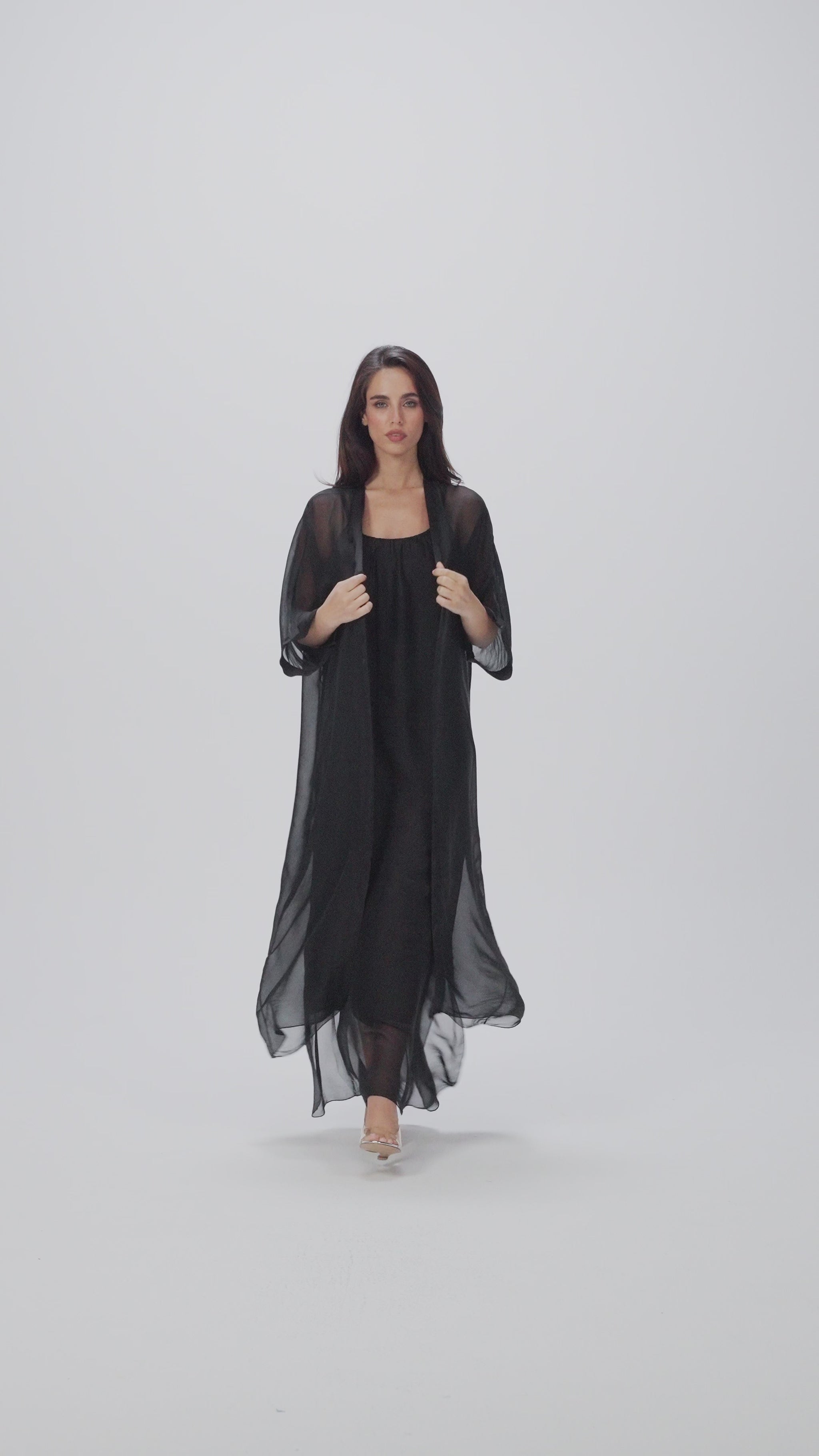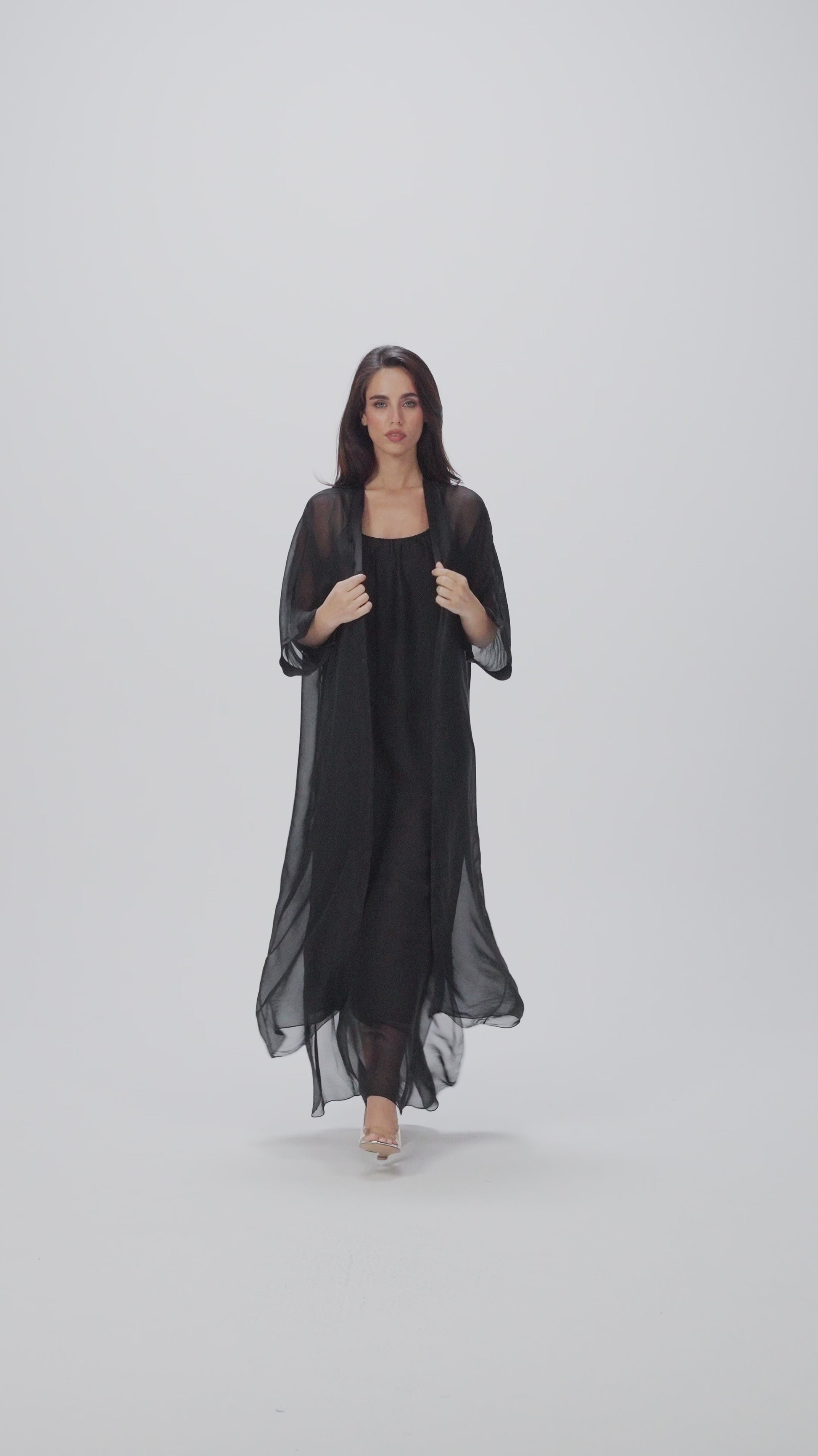قفطان إيطالي من الحرير القطني باللونين الأسود والأبيض (مجموعة رمضان)