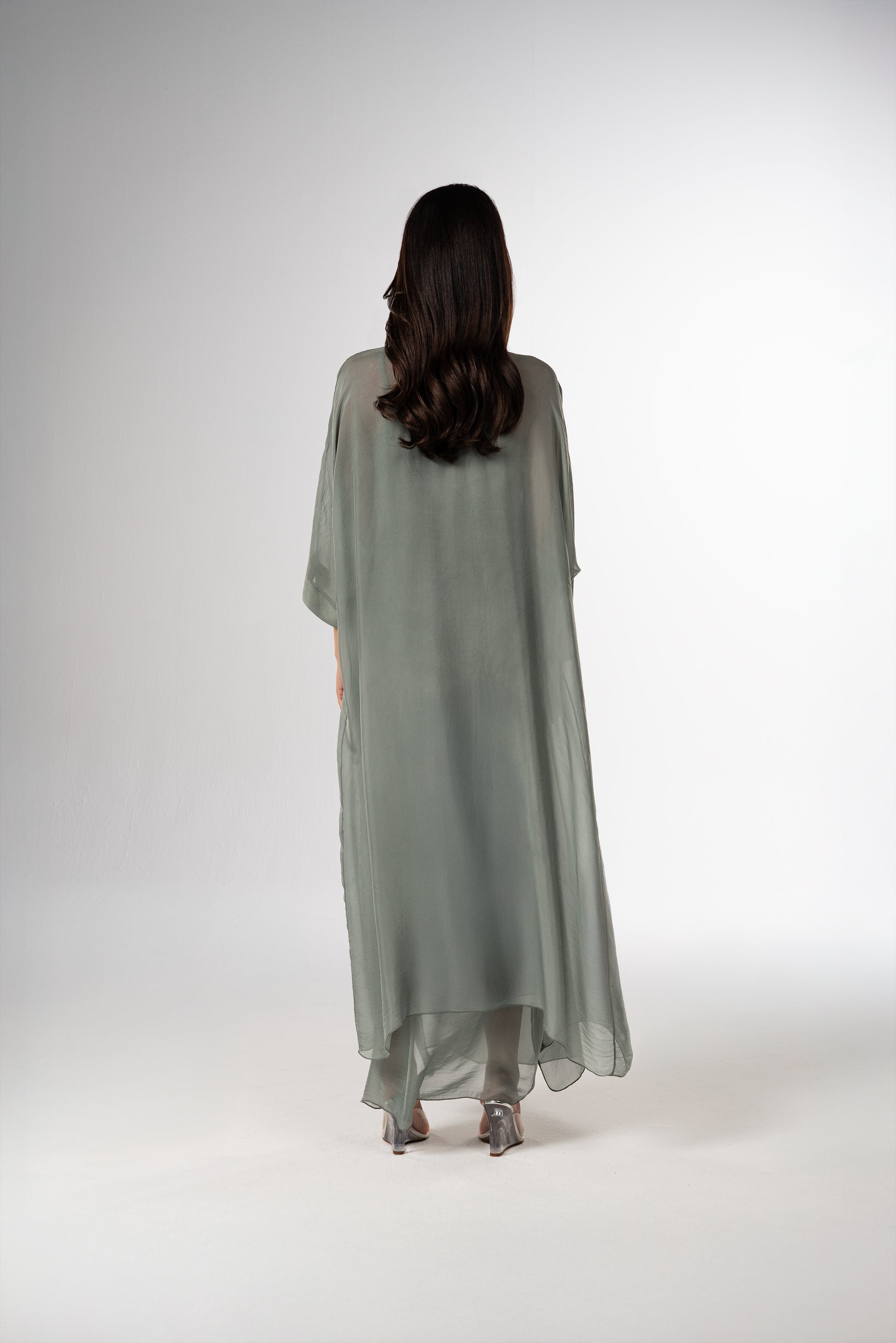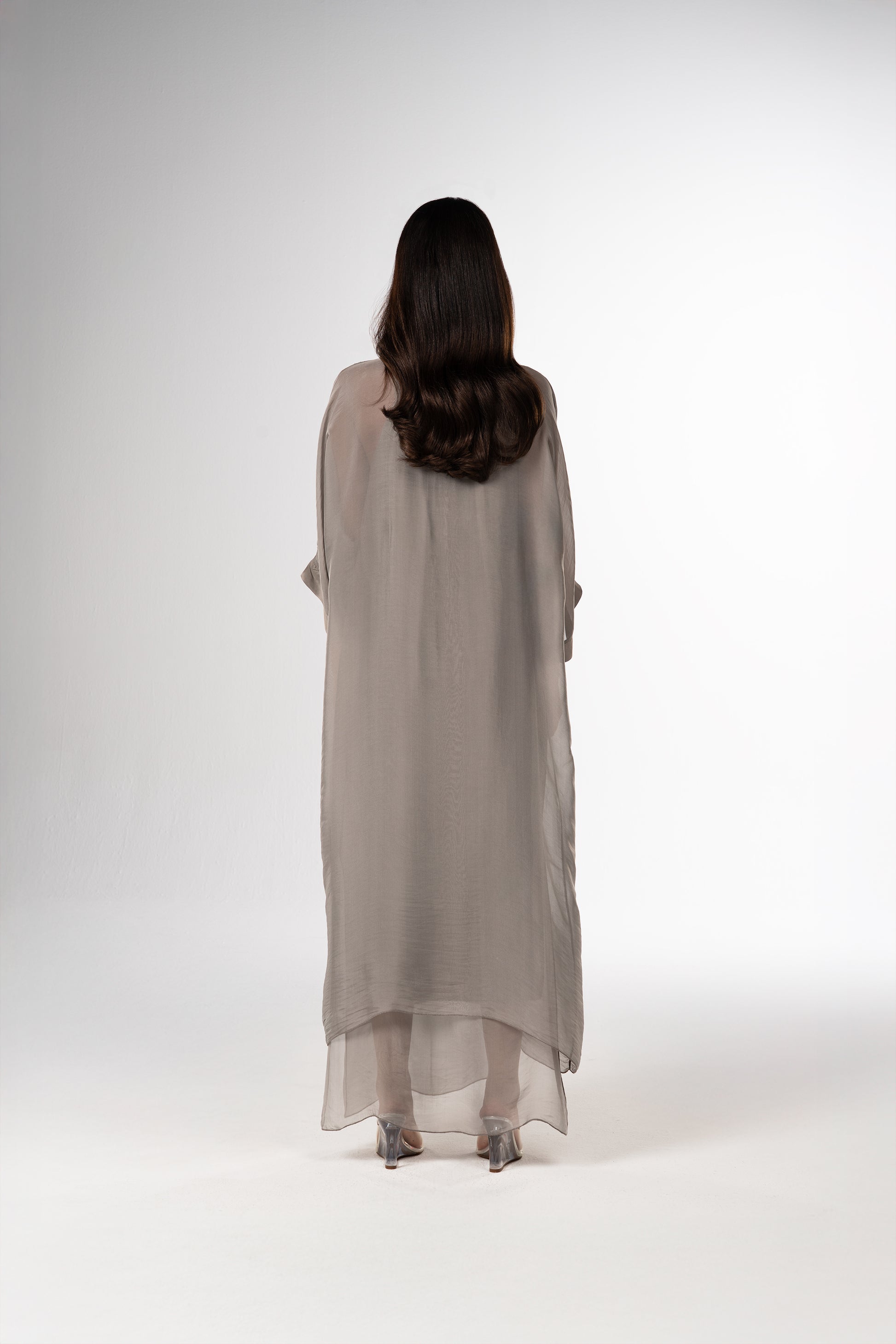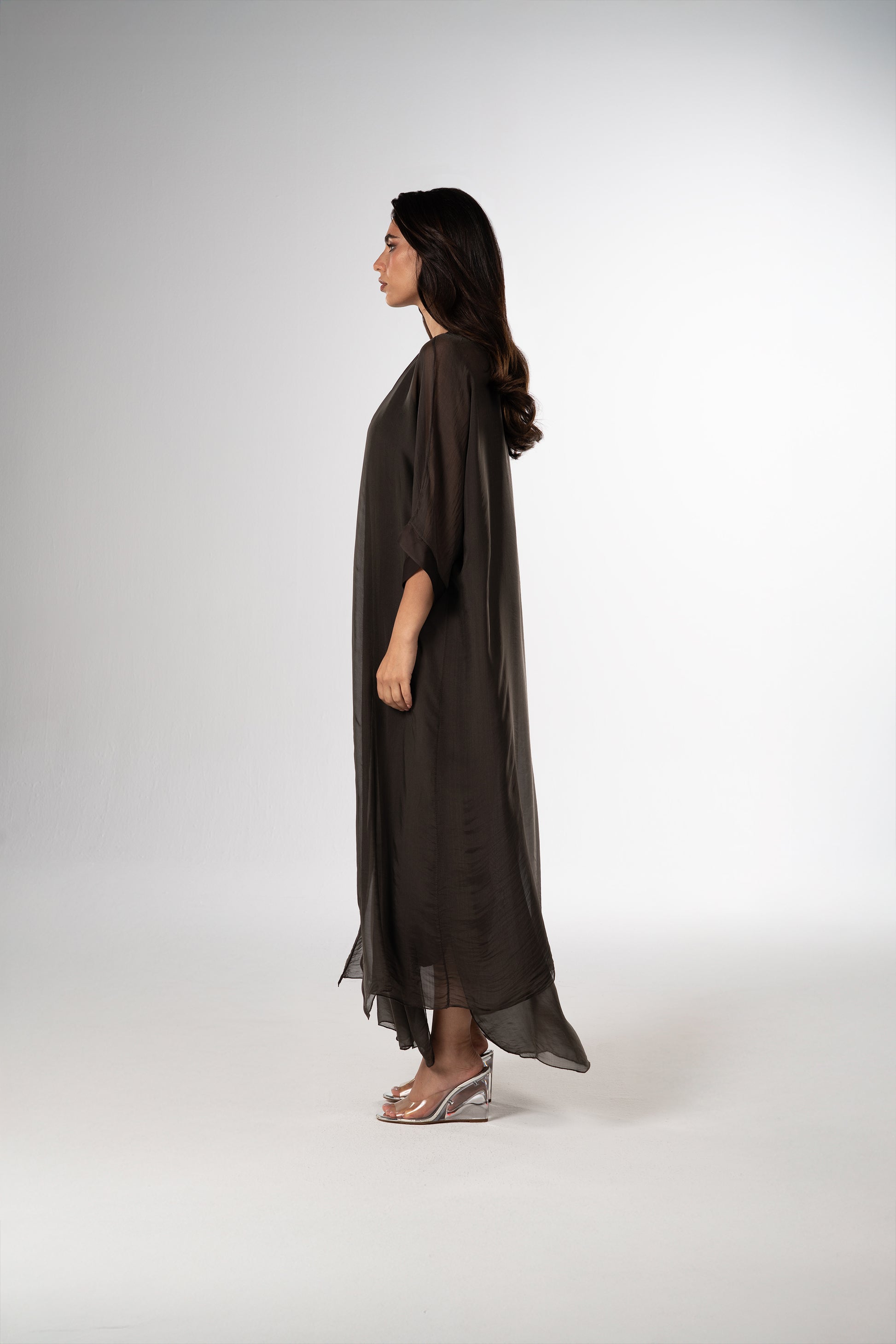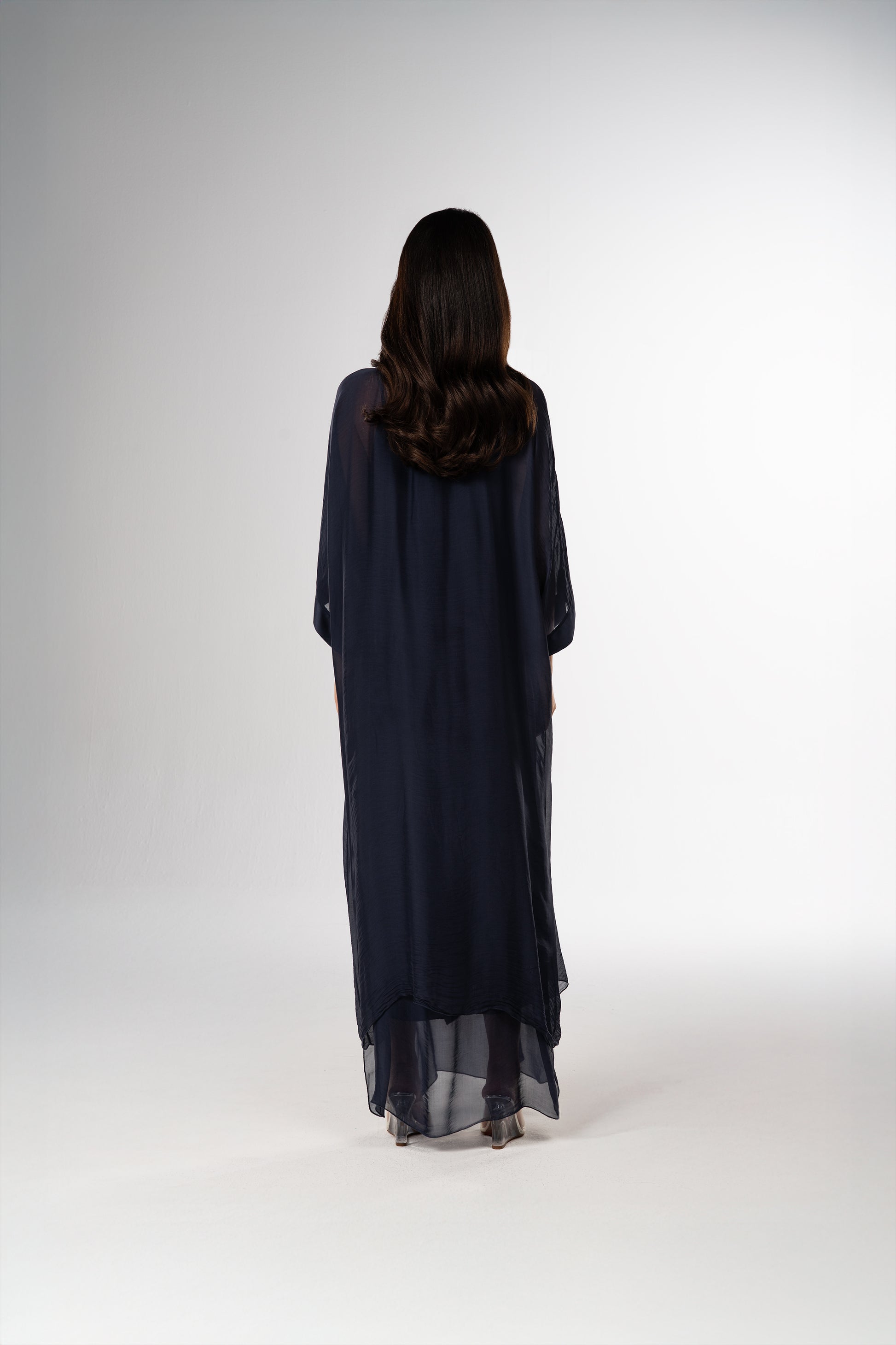 قفطان إيطالي من الحرير القطني باللونين الأسود والأبيض (مجموعة رمضان)