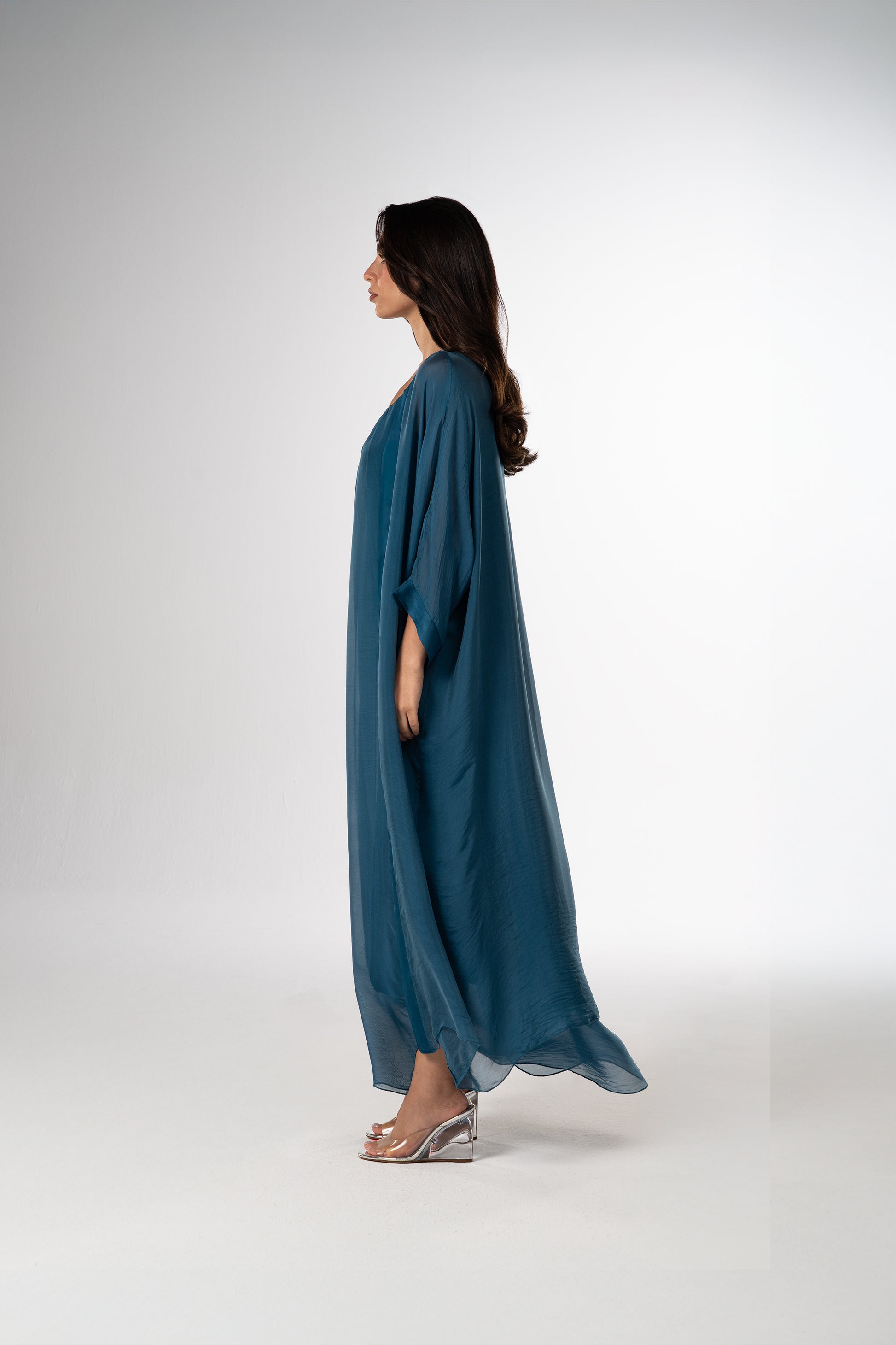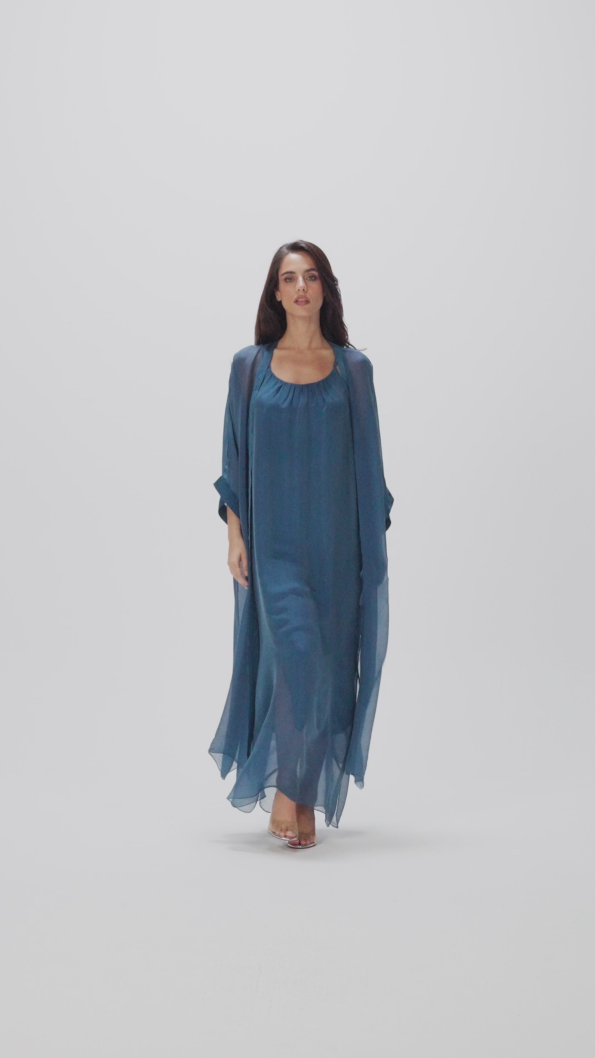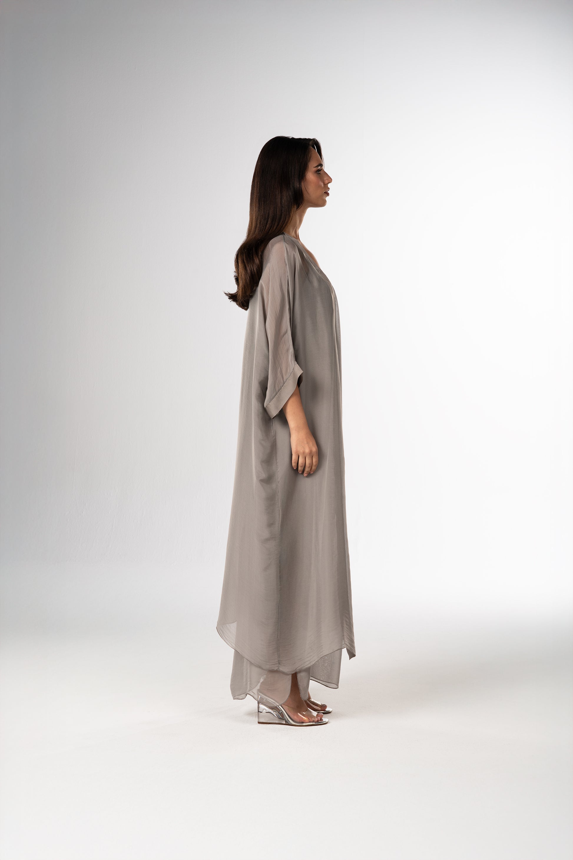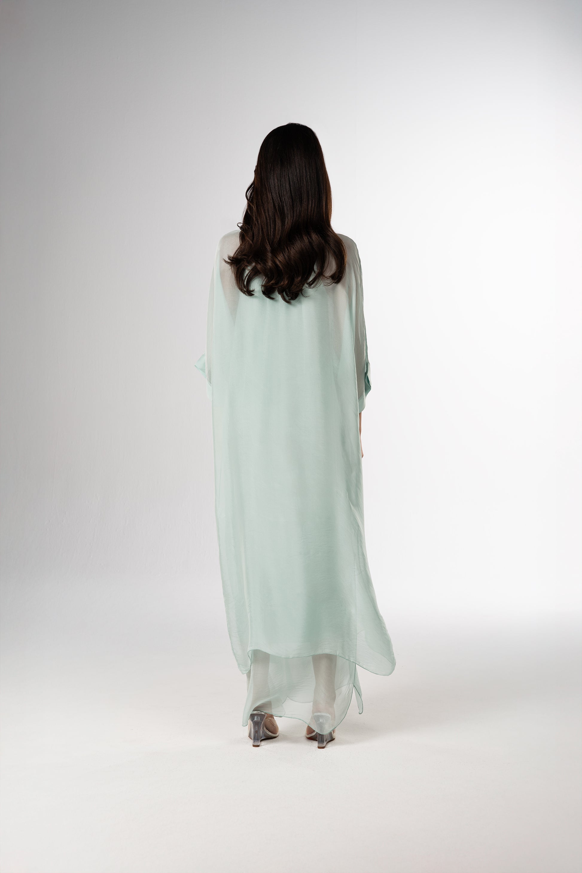 قفطان إيطالي من الحرير القطني باللونين الأسود والأبيض (مجموعة رمضان)