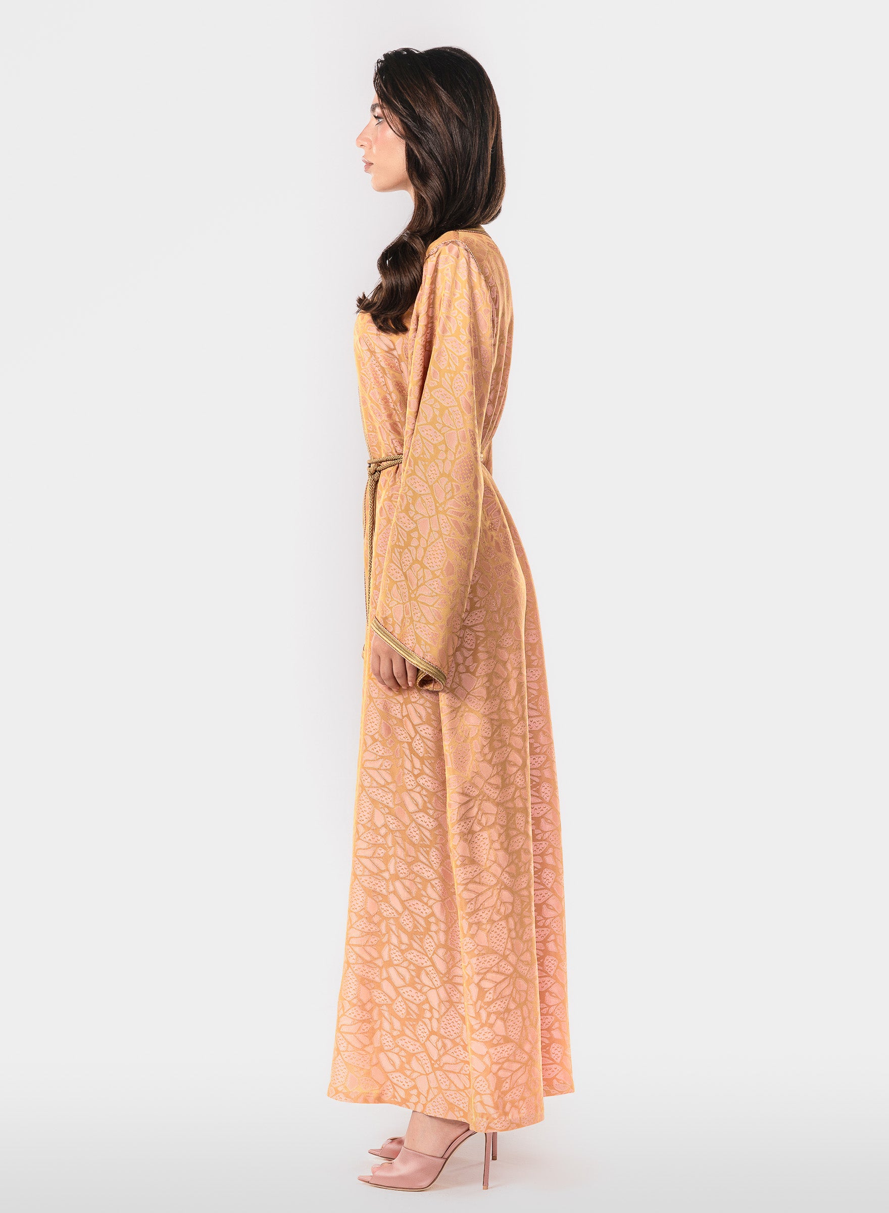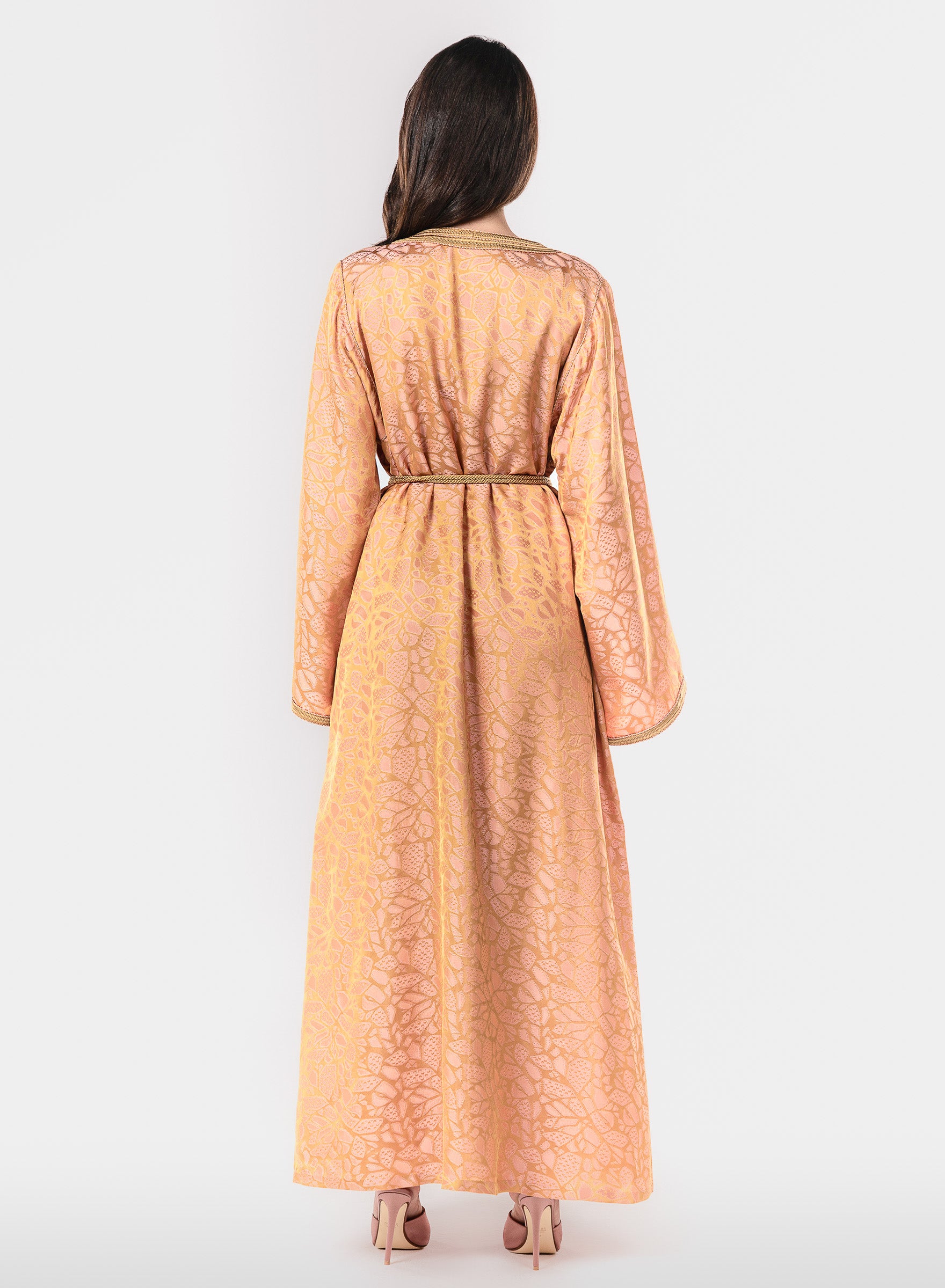 Italian Golden Peach Jacquard Hand Embroidered Caftan